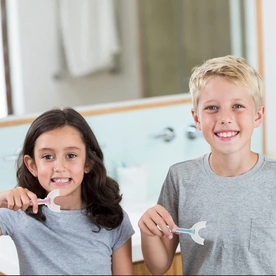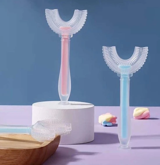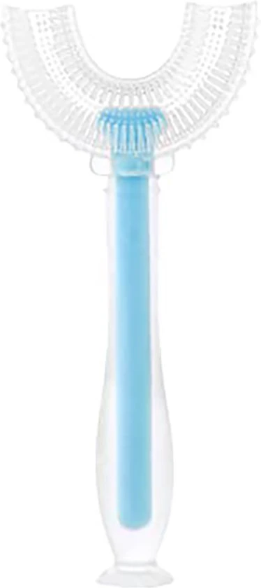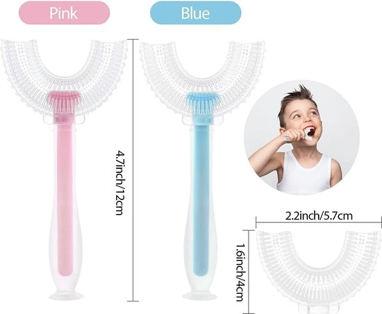 We maken gebruik van een unieke U-vormige borstel. Dit model past beter bij kinderen om hun tanden te poetsen dan de traditionele tandenborstel. Doordat het een U-vorm heeft past het gemakkelijk in de mond van het kind, waardoor hij/zij het makkelijker kan accepteren. En kan het tanden poetsen spelender wijs worden aangeleerd. De uitgebreide borstelkop zorgt voor goede reiniging van tanden zonder dat de kinderen hun pols hoeven te verdraaien.