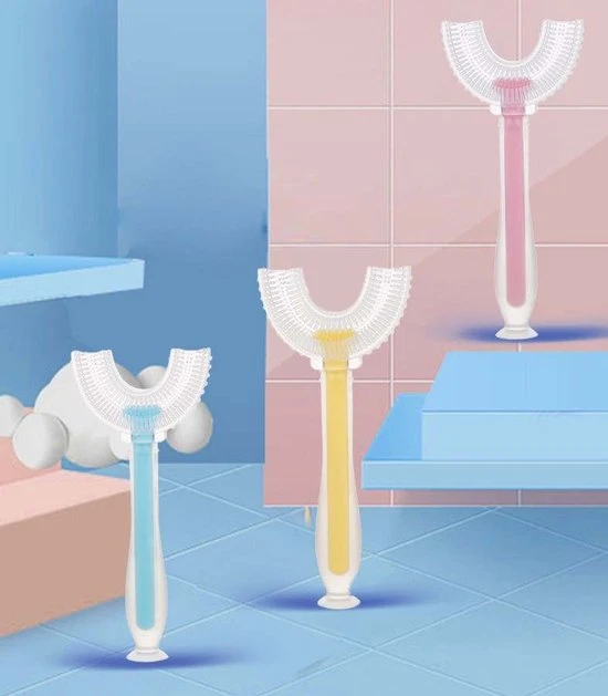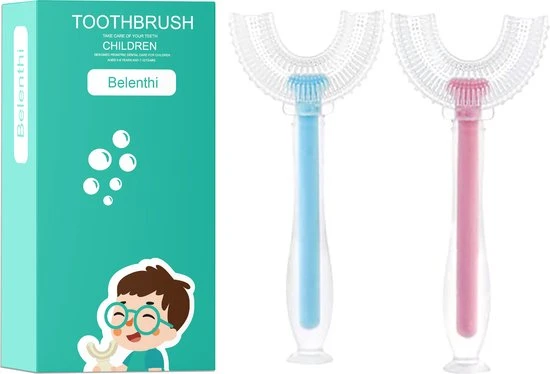 Handige U-vormige tandeborstel met zuignap voor kids van 2 tot 12 jaar. De zachte U-vormige tandenborstel van Belenthi is gemaakt van hoogwaardige silliconen, waarmee het volledige gebit van uw kind gemakkelijk handmatig gereinigd kan worden. Het product is speciaal ontworpen voor de gevoelige tanden van kinderen.