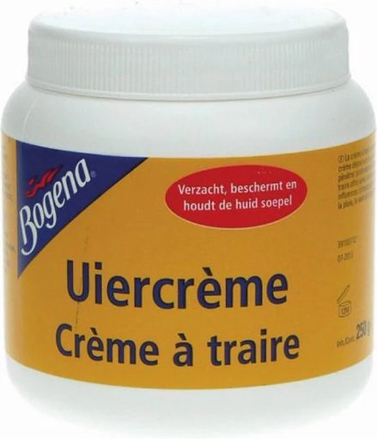 Uiercrème is samengesteld op basis van een niet vette crème welke de eigenschap heeft diep door te dringen in de huid. Uiercrème geeft een goede bescherming tegen ongunstige weersinvloeden.