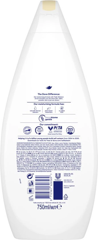 Dove zorgt voor iedereen. Dove Deeply Nourishing is een hydraterende Douchegel die je helpt om van elke douchebeurt een daad van zelfzorg te maken. Het geeft je een zachtere, gladdere huid in slechts één douchebeurt en transformeert zelfs de meest droge huid. Deze bodywash bevat geen sulfaten, is voor 92% biologisch afbreekbaar* en wordt verpakt in 100% gerecyclede plastic flessen**. Dove test wereldwijd niet op dieren en is door PETA gecertificeerd als ‘Cruelty-Free’.