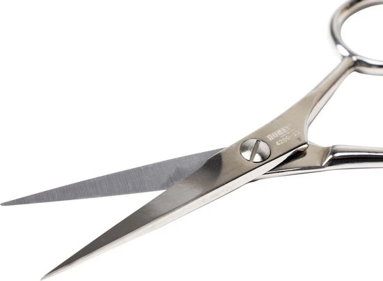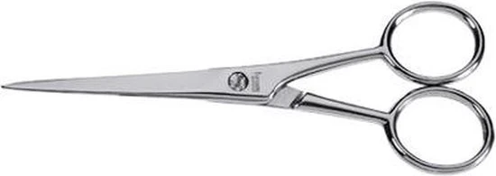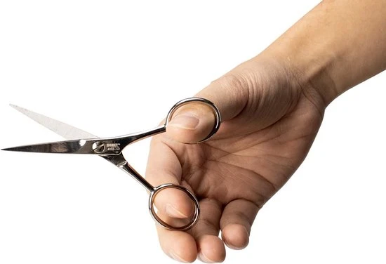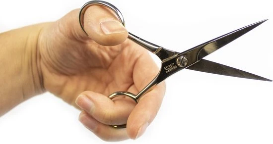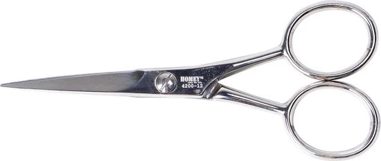 De schaar wordt ook vaak door kappersscholen gebruikt als baardschaar door zijn compacte formaat van 12cm. Deze kleine kappersschaar wordt vaak in combinatie gekocht met de Homey’s Kappersschaar van 16cm en de Homey’s Effileerschaar.