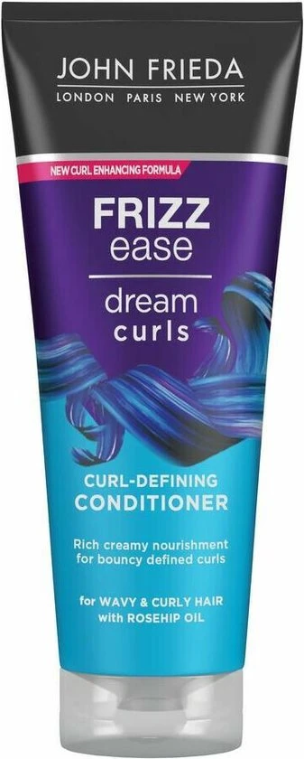 John Frieda Frizz Ease Dream Curls Conditioner verstrekt en definieert het natuurlijke krulpatroon, speciaal met voedende bestanddelen en pluis-bestrijdende siliconen. De conditioner gaat pluis tegen en laat de natuurlijke krullen laten herleven. De conditioner is ontwikkeld voor golvend, krullend, pluizig haar. Voor zachte, veerkrachtige krullen met een langdurige kruldefinitie. Veilig voor gekleurd haar.