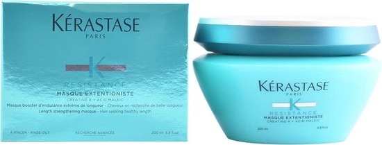 Kérastase Résistance Masque Extentioniste is een masker wat zelfs de extreem verzwakte haarpunten herstelt en de haargroei bevordert. Het masker activeert de haarzakjes en beschermt de gezondheid van het haar tijdens de groei. Kérastase maakt gebruikt van nieuwe baanbrekende technologieën waardoor haarbreuk tot wel 99% afneemt en ook gespleten haarpunten zullen met maar liefst 78% vermindert worden. Ideaal voor gevoelig of zwak haar. Bij het gebruik van de Kérastase Résistance Extentioniste producten zal het haar tot wel 4cm groeien in slechts 3 maanden tijd.