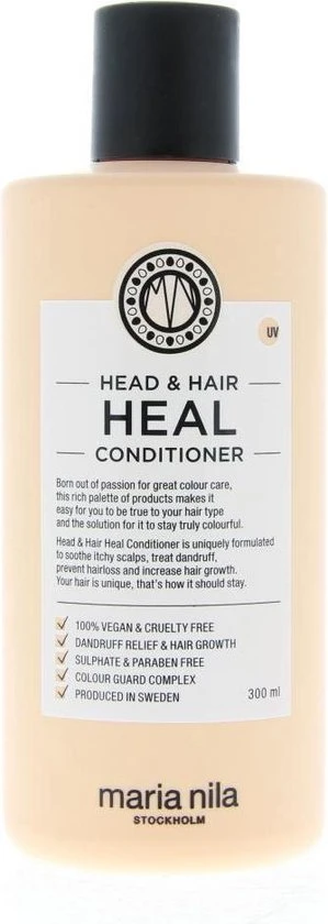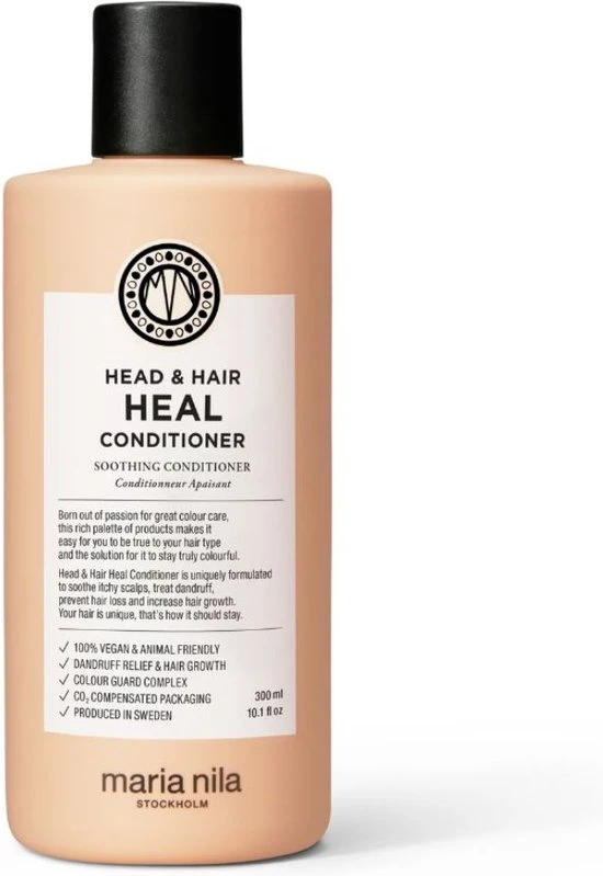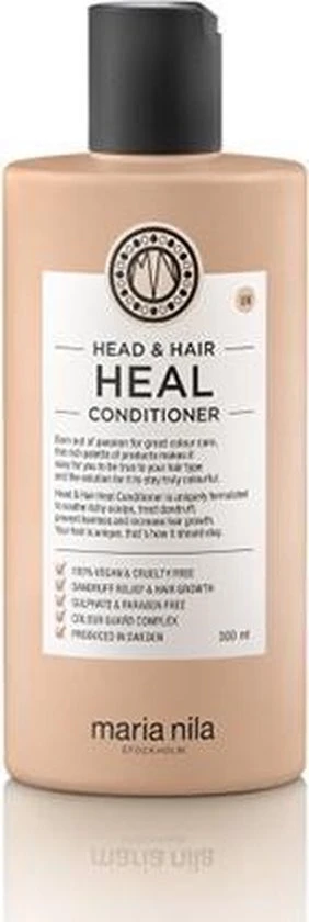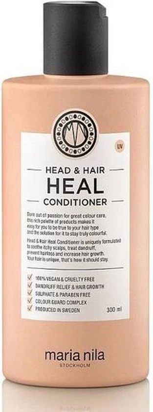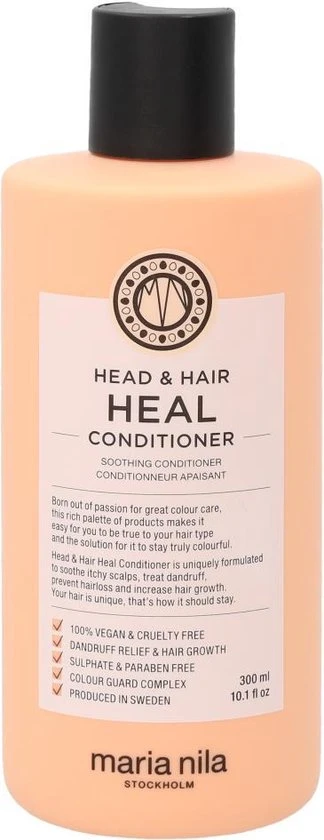 Maria Nila Head & Hair Heal is een verzorgende productlijn speciaal ontwikkeld voor de gevoelige hoofdhuid. Door de verzorgende ingrediënten Aloë Vera, Vitamine E wordt zowel de hoofdhuid als het haar verzorgd en gehydrateerd. De producten zorgen ervoor dat hoofdhuid problemen zoals roos worden behandeld, Apigenin en peptides stimuleert de haargroei en Piroctone Olamine voorkomt haaruitval. Het haar en de hoofdhuid zullen na gebruik van de Maria Nila Heal producten weer gezond aanvoelen en stralen.