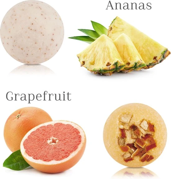 De bruisballen zijn gemaakt van natuurlijke ingrediënten om de hoogste kwaliteit te garanderen. Elke bal bevat echte bloemblaadjes en fruitstukjes. De bruisballen zijn vrij van additieven, parabenen, zouten en alcohol.