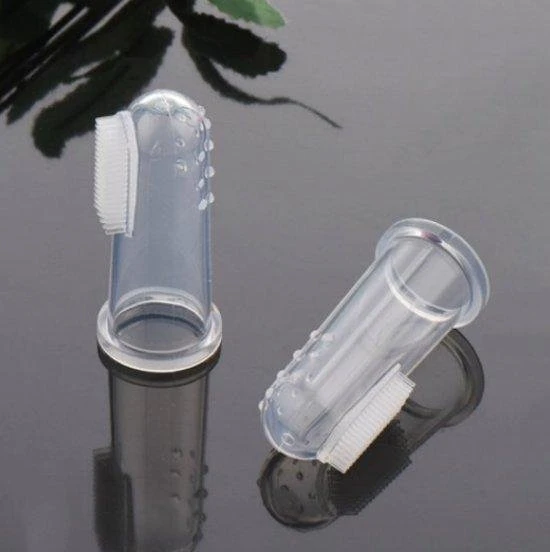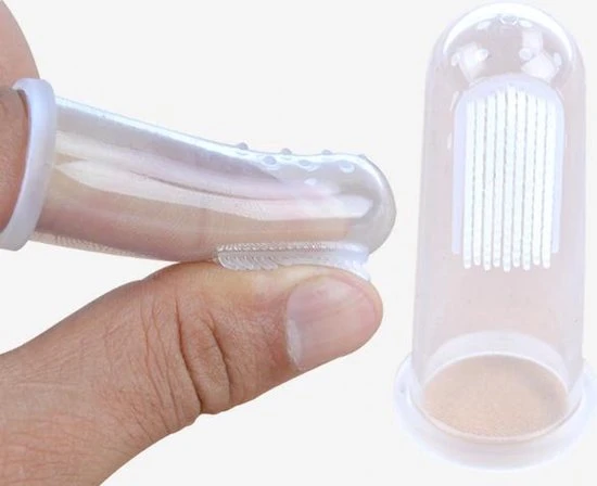 Zoals recentelijk in het nieuws te zien was is dat naar schatting 40.000 Nederlandse kinderen onder de 4 jaar geen goede mondverzorging krijgt van de ouders. Deze moeten op die leeftijd al melktandjes laten trekken. Dus logischerwijs kunt u er niet te vroeg mee beginnen. Maar waarom gaat het dan toch fout? Dit komt omdat het nog een heel karwei is om de tandjes van uw baby te borstelen. Ze bijten en zuigen vrolijk op de normale tandenborstels, maar als u eenmaal begint met borstelen is het vaak drama. Om die reden is deze Siliconen Vinger Tandenborstel ontworpen. Deze is gemakkelijk om de vinger te doen en voelt zeer zacht aan in het mondje van uw kind.