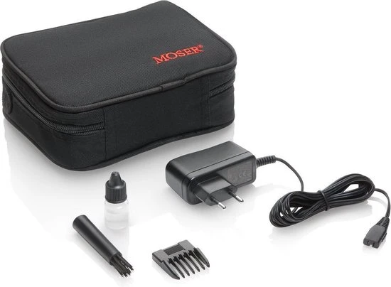 Bij deze Moser NeoLiner Trimmer Zwart wordt 1 vario opzetkam ( 3, 6mm), adapter, reinigingsborsteltje, olie en etui geleverd.