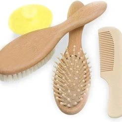 Kopen ✨ Haur – Babykam Set Met Extra Zachte Borstel – Borstel Bamboe – Geitenhaar Borstel ????