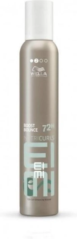 Wella EIMI Boost Bounce is een krulverstevigende mousse die krullend haar een energieboost geeft en het haar definitie en glans geeft. Wella EIMI Boost Bounce maakt een eind aan kroes, pluis en ontembaar haar. Deze krulverstevigende mousse heeft een hold niveau van 2, wat betekent dat het haar licht verstevigd wordt.